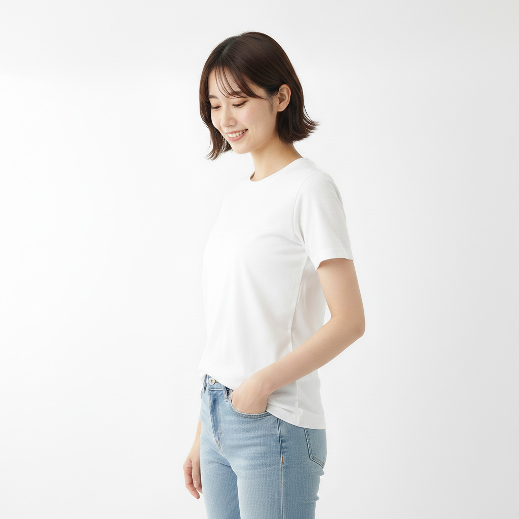 蒸れやすいバスト周りのために、通気性抜群のアイスシルク生地を採用しました。 24時間サラサラとした快適な肌触りが続き、夏場や運動時でも不快なムレを感じさせません。 「苦しい」「暑い」という従来のナベシャツの常識を覆す軽やかな着心地です。